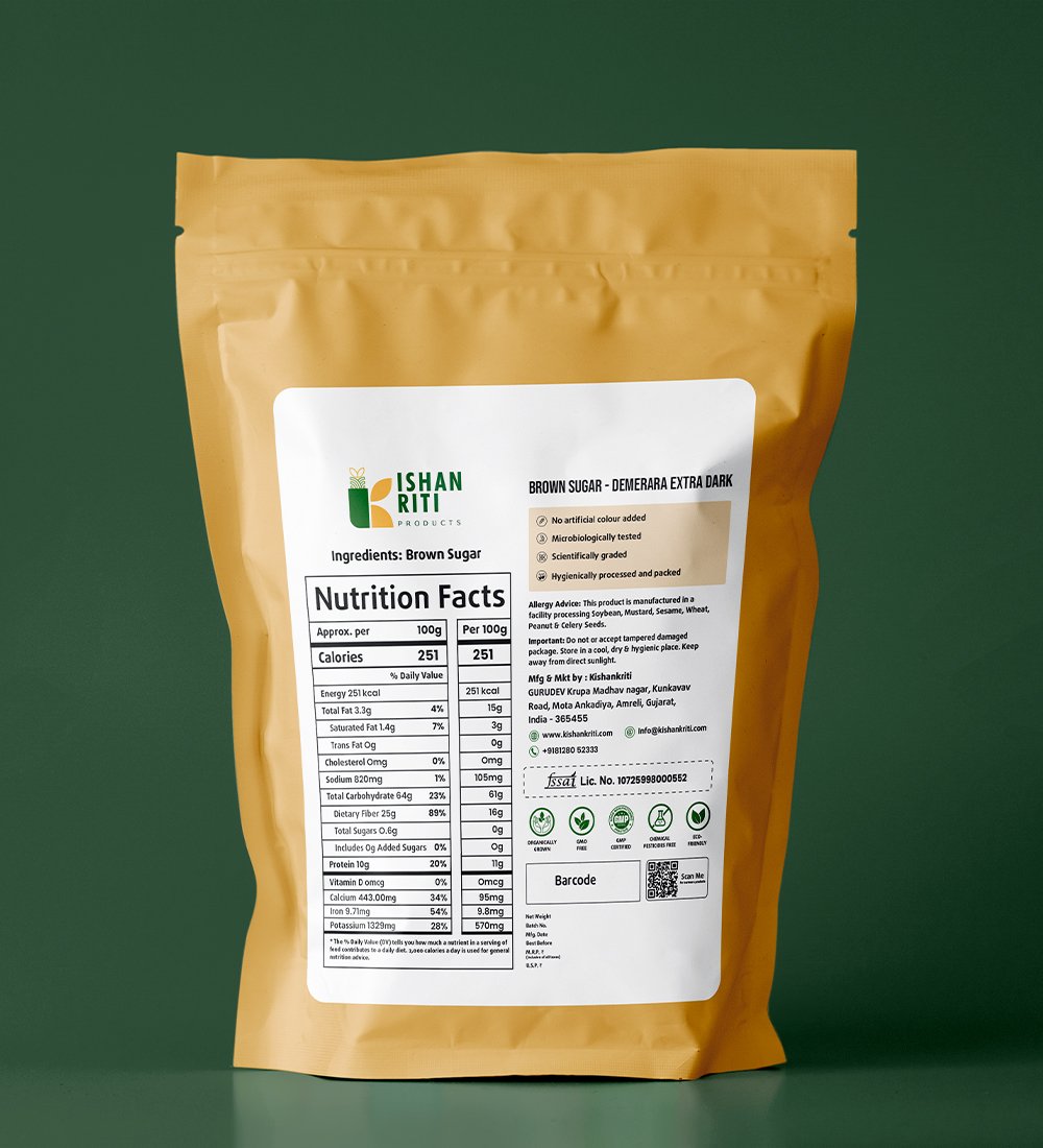 Kishan Kriti Demerara Extra Dark Brown Sugar is a premium, unrefined sugar made from the purest sugarcane juice. Unlike regular white sugar, this natural sweetener retains its rich molasses content, giving it a deep caramel flavor and dark golden-brown color.